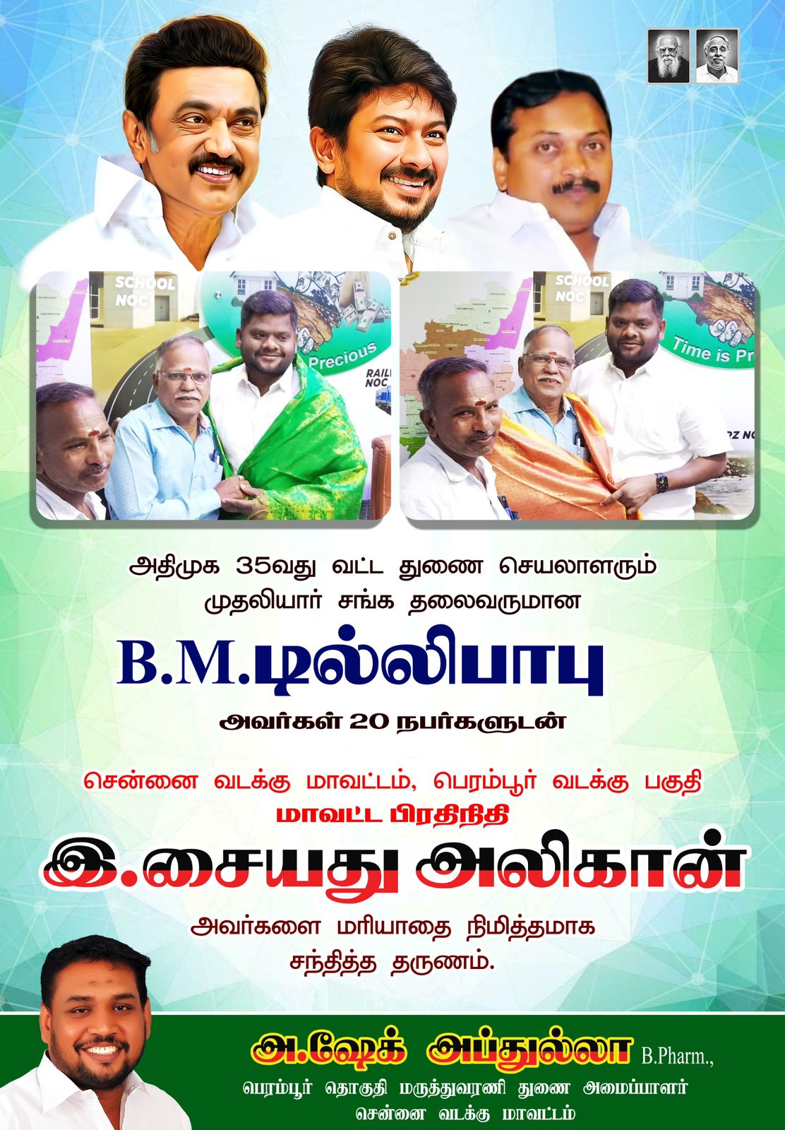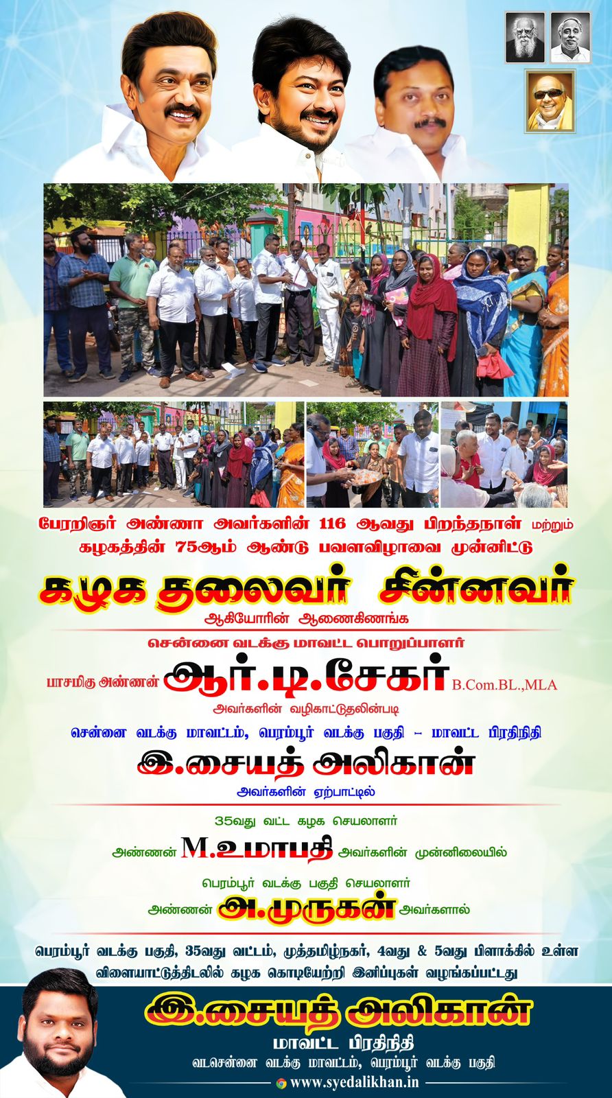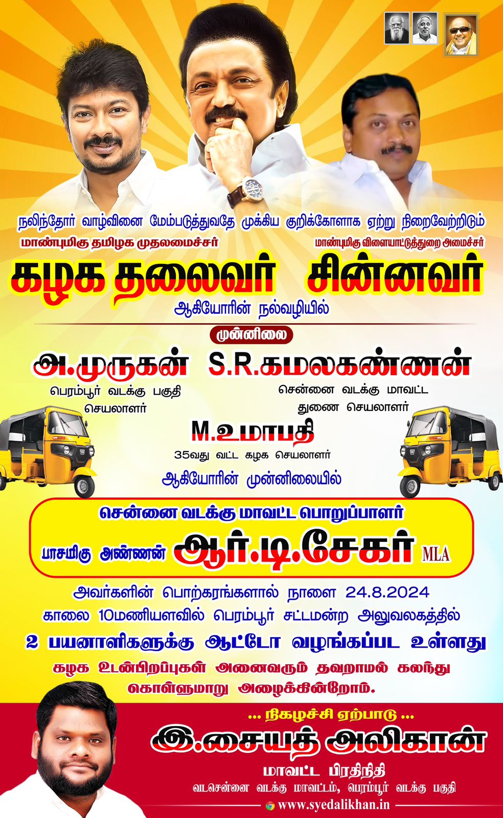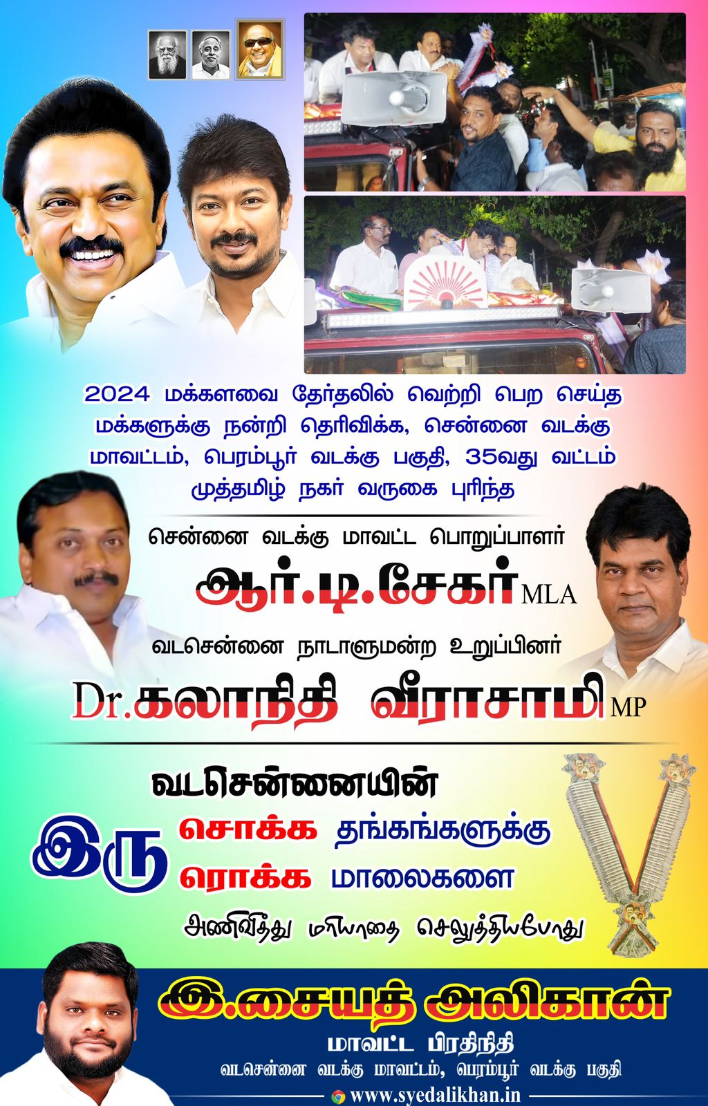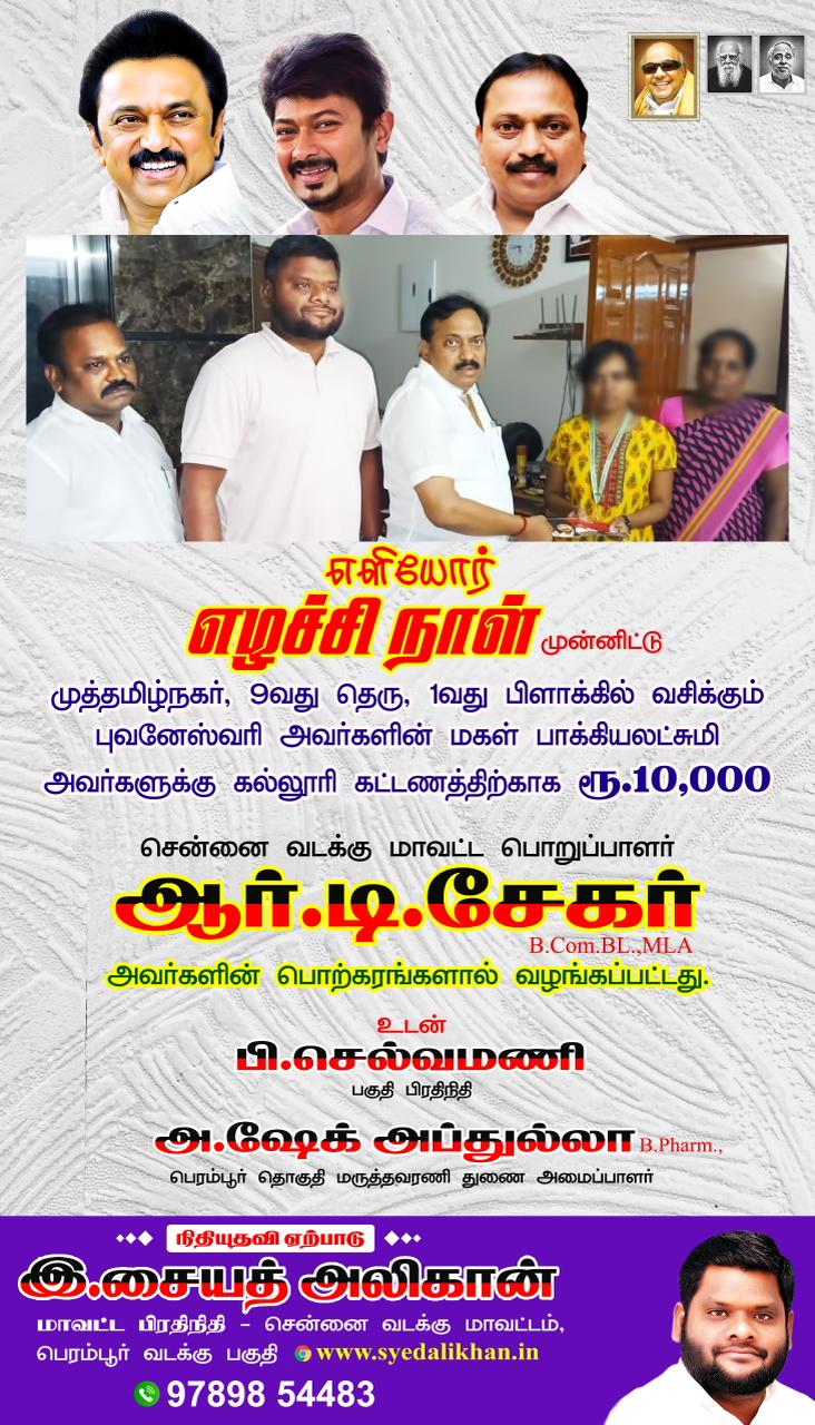 A dedicated leader and an influential figure in North Chennai’s Perambur constituency, serves as the district representative, advocating for the people’s welfare and progress. He is an esteemed member of the Dravida Munnetra Kazhagam (DMK), a prominent political party in Tamil Nadu known for its commitment to social justice and development.
