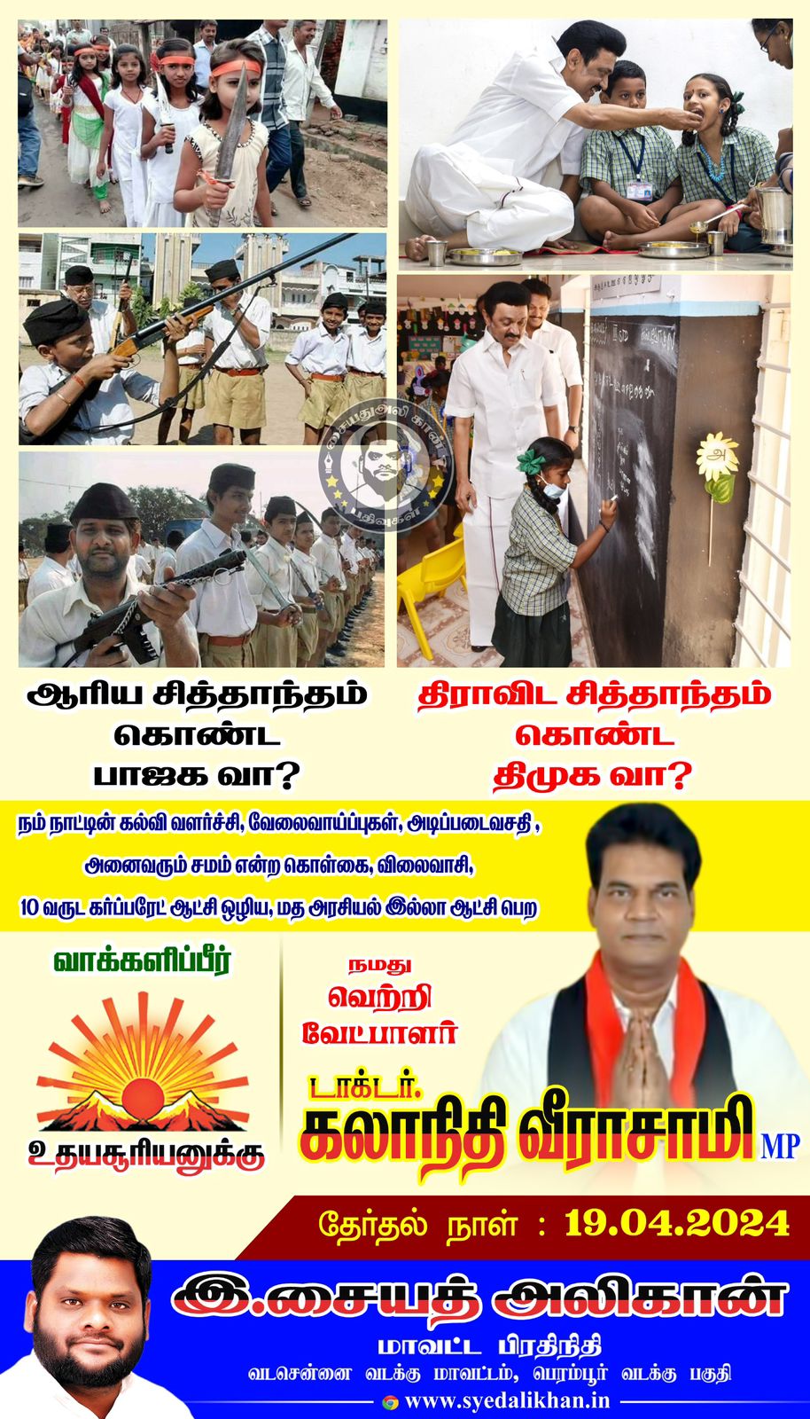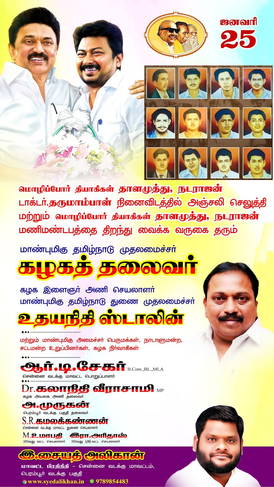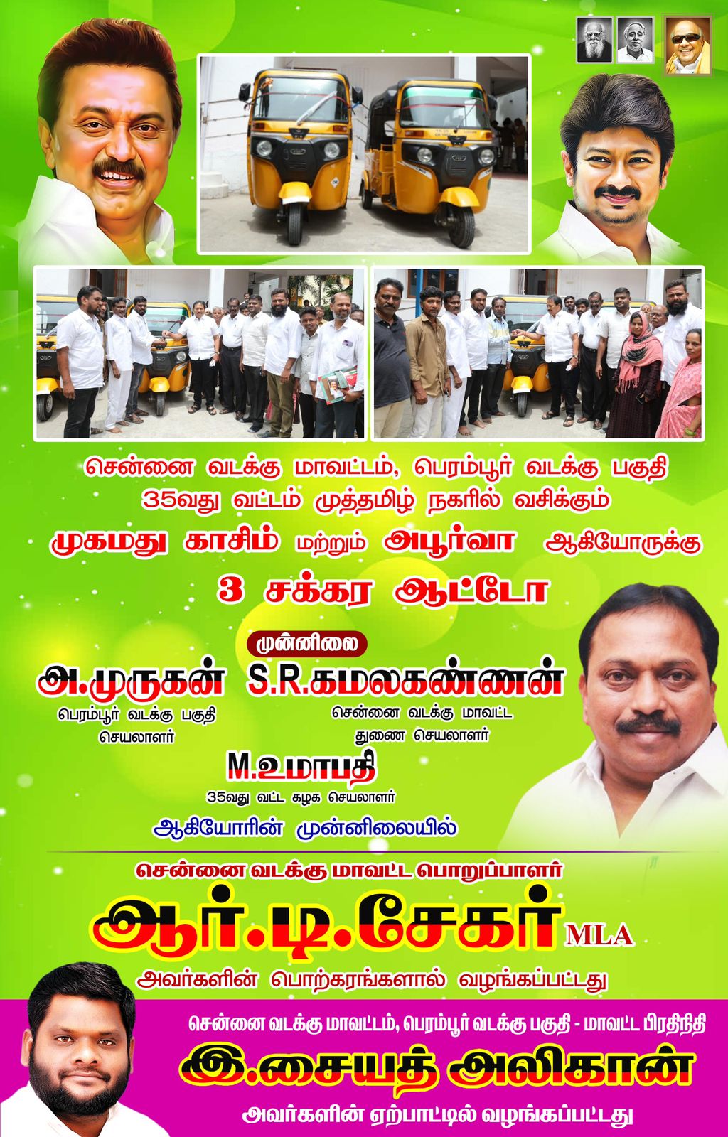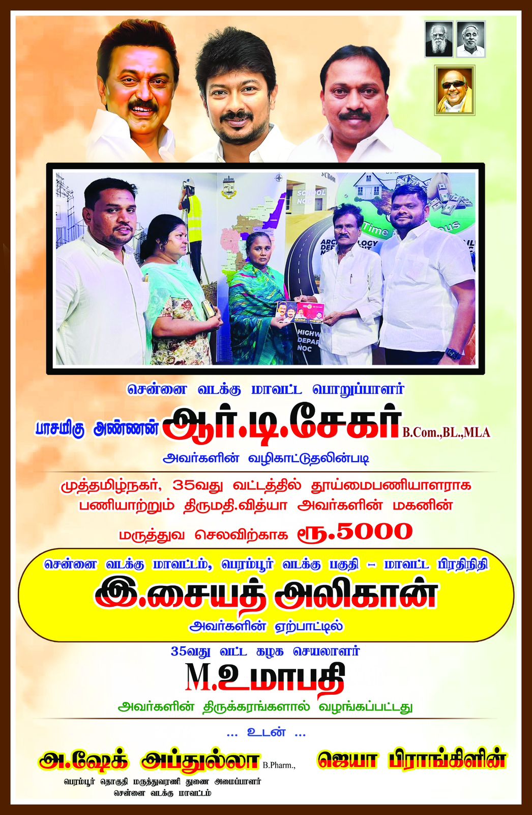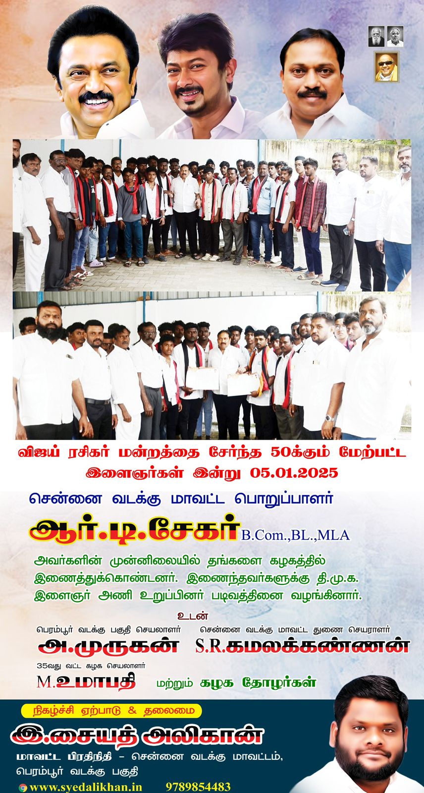 A dedicated leader and an influential figure in North Chennai’s Perambur constituency, serves as the district representative, advocating for the people’s welfare and progress. He is an esteemed member of the Dravida Munnetra Kazhagam (DMK), a prominent political party in Tamil Nadu known for its commitment to social justice and development.
