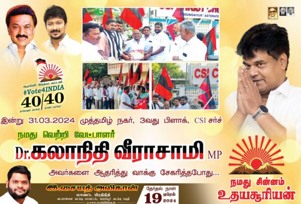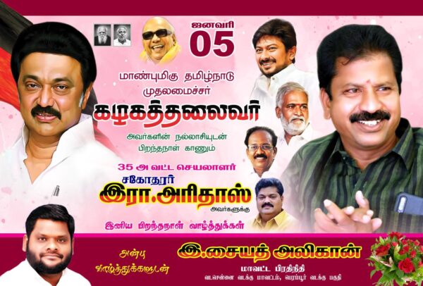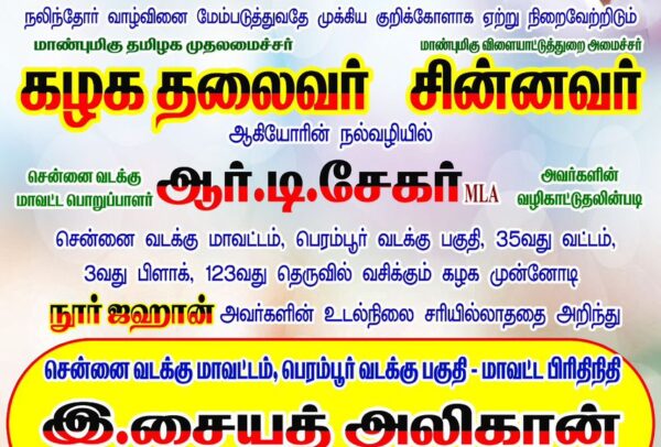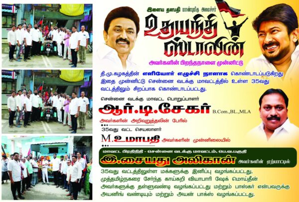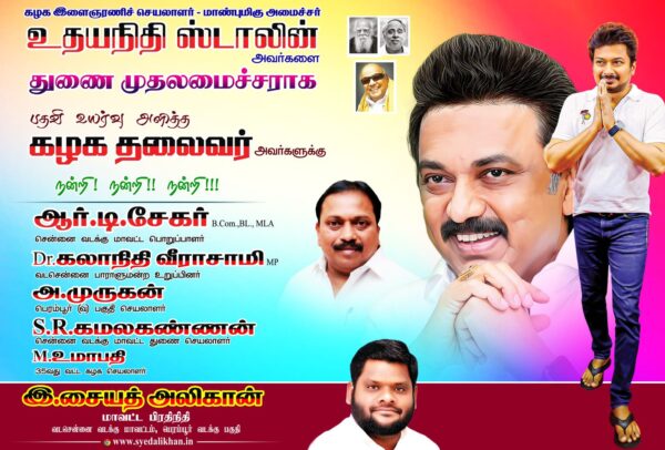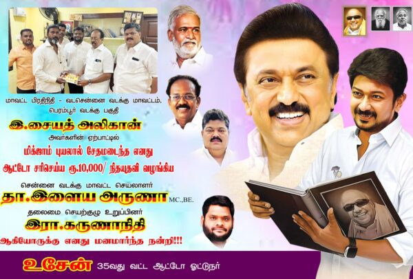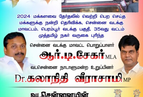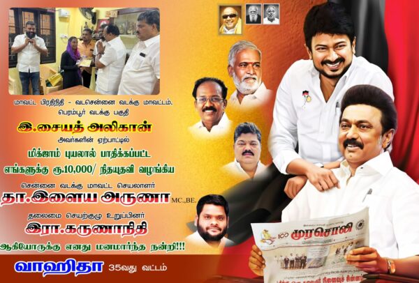 A dedicated leader and an influential figure in North Chennai’s Perambur constituency, serves as the district representative, advocating for the people’s welfare and progress. He is an esteemed member of the Dravida Munnetra Kazhagam (DMK), a prominent political party in Tamil Nadu known for its commitment to social justice and development.